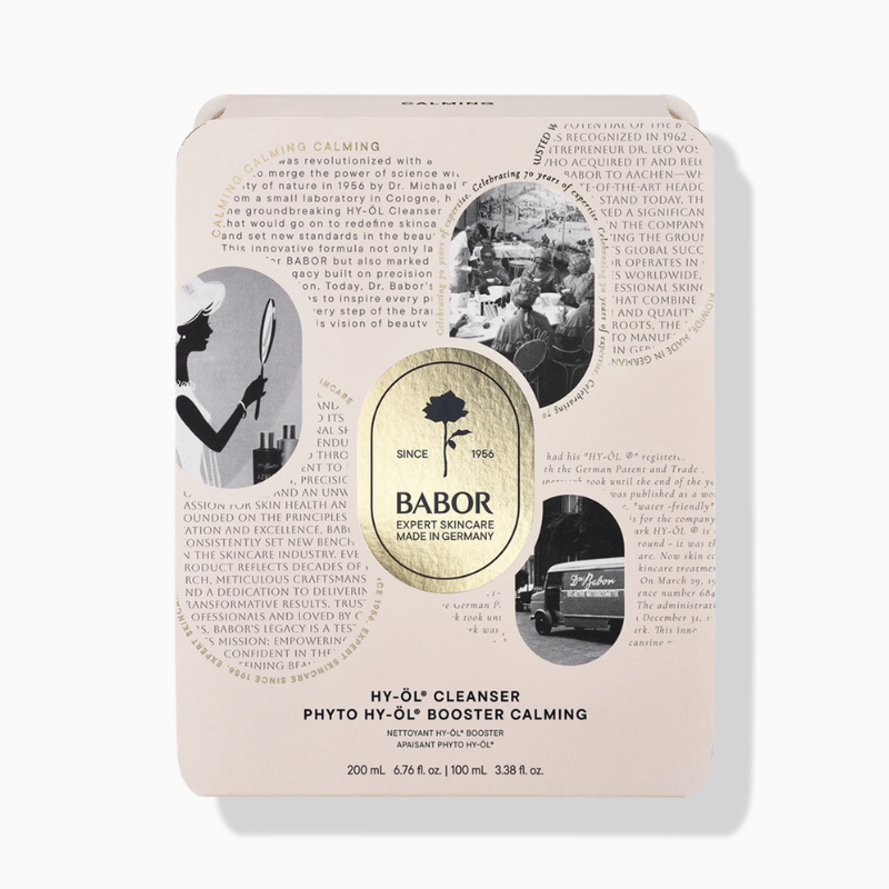 Jede Schönheitspflege beginnt mit einer gründlichen Hautreinigung. Die BABOR 2-Phasen-Tiefenreinigung mit Hy-Öl Cleanser und Phyto Hy-Öl Booster ist bis heute einzigartig auf dem Kosmetikmarkt und wird in der schönen und eleganten 70th Anniversary Umverpackung inklusive praktischer Metallbox geliefert.